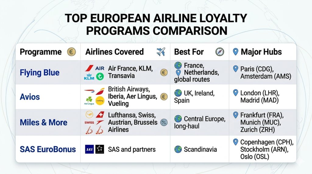 Join the frequent flyer programme of the airline you fly most often. If you fly different airlines across Europe, join the programme that covers the most routes for your travel patterns.